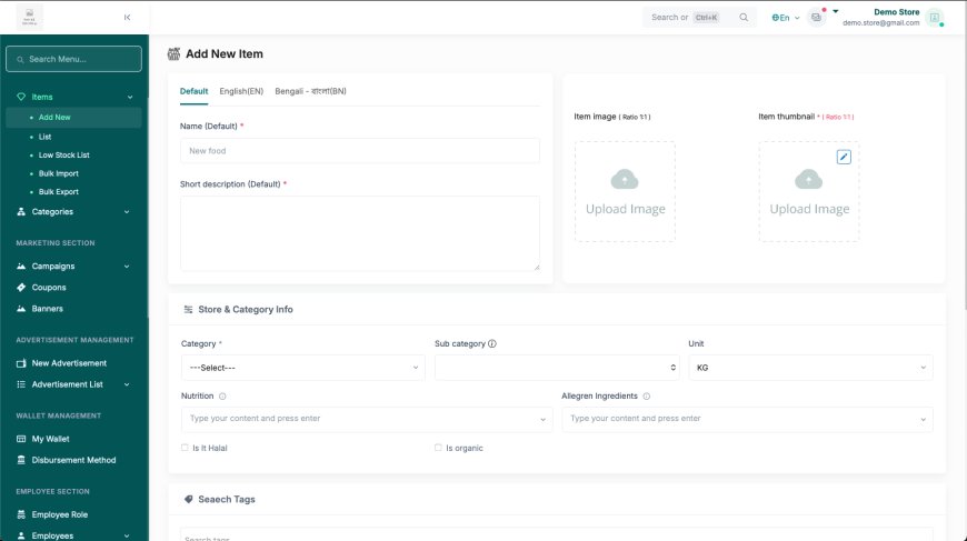 Category & Sub category: আপনার পণ্যটি কোন ক্যাটাগরির (যেমন: Fast Food, Drinks) তা সিলেক্ট করুন।